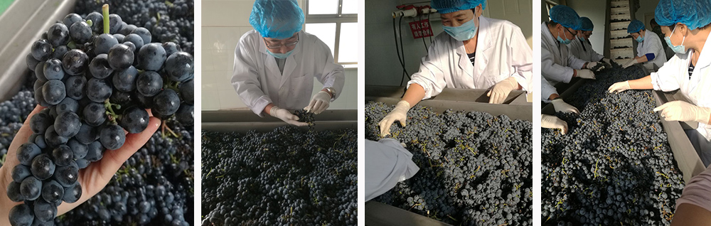 引进先进的葡萄分拣、破碎、压榨等加工设备