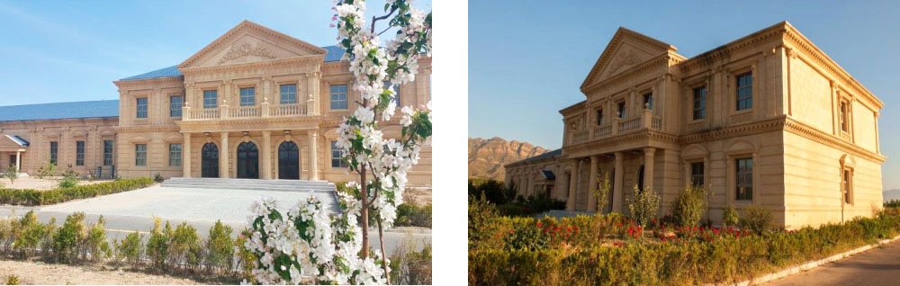 欧式建筑风格的酒庄,座落在葡萄庄园里,天然宝石般镶嵌,依山傍水,座拥风水宝地